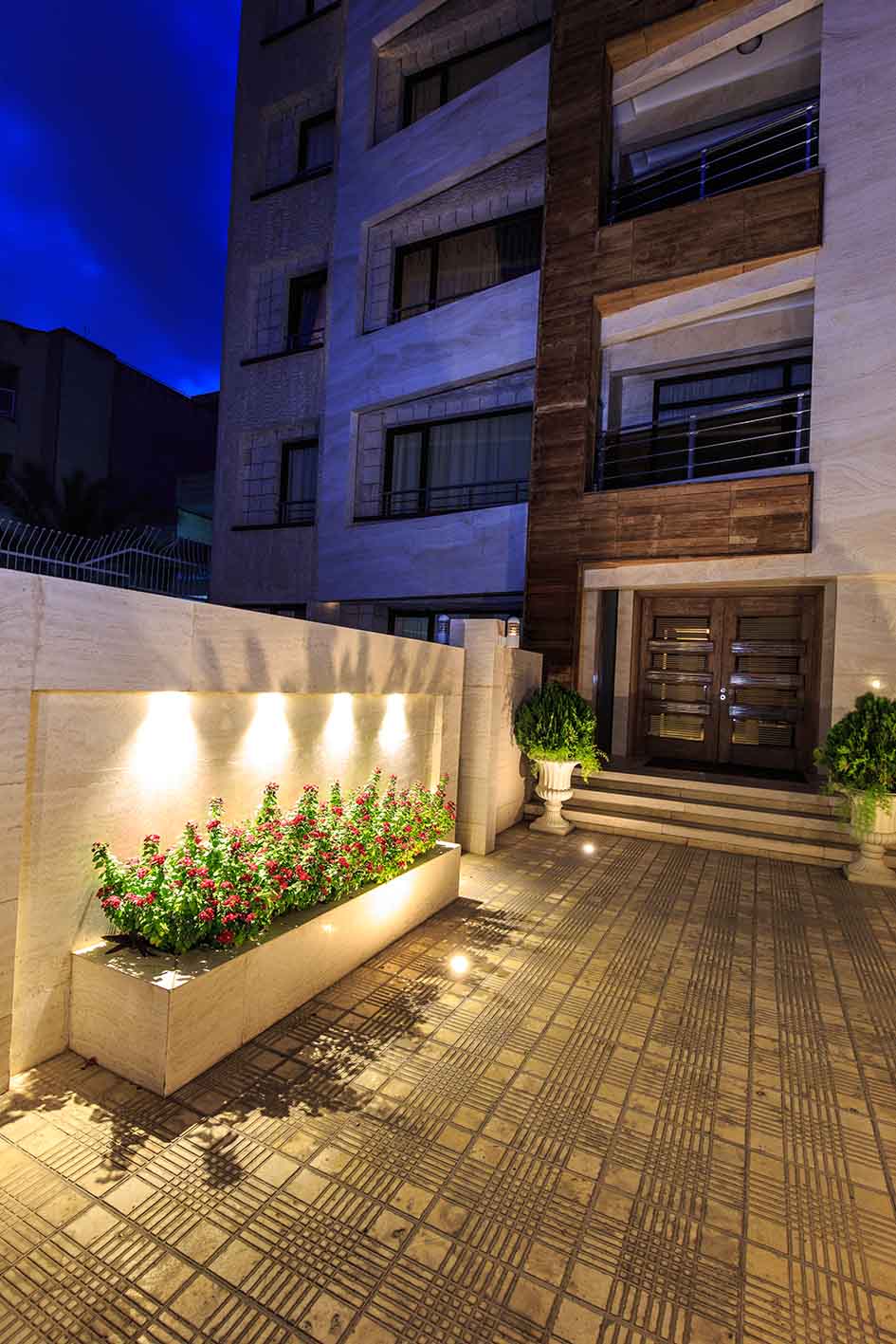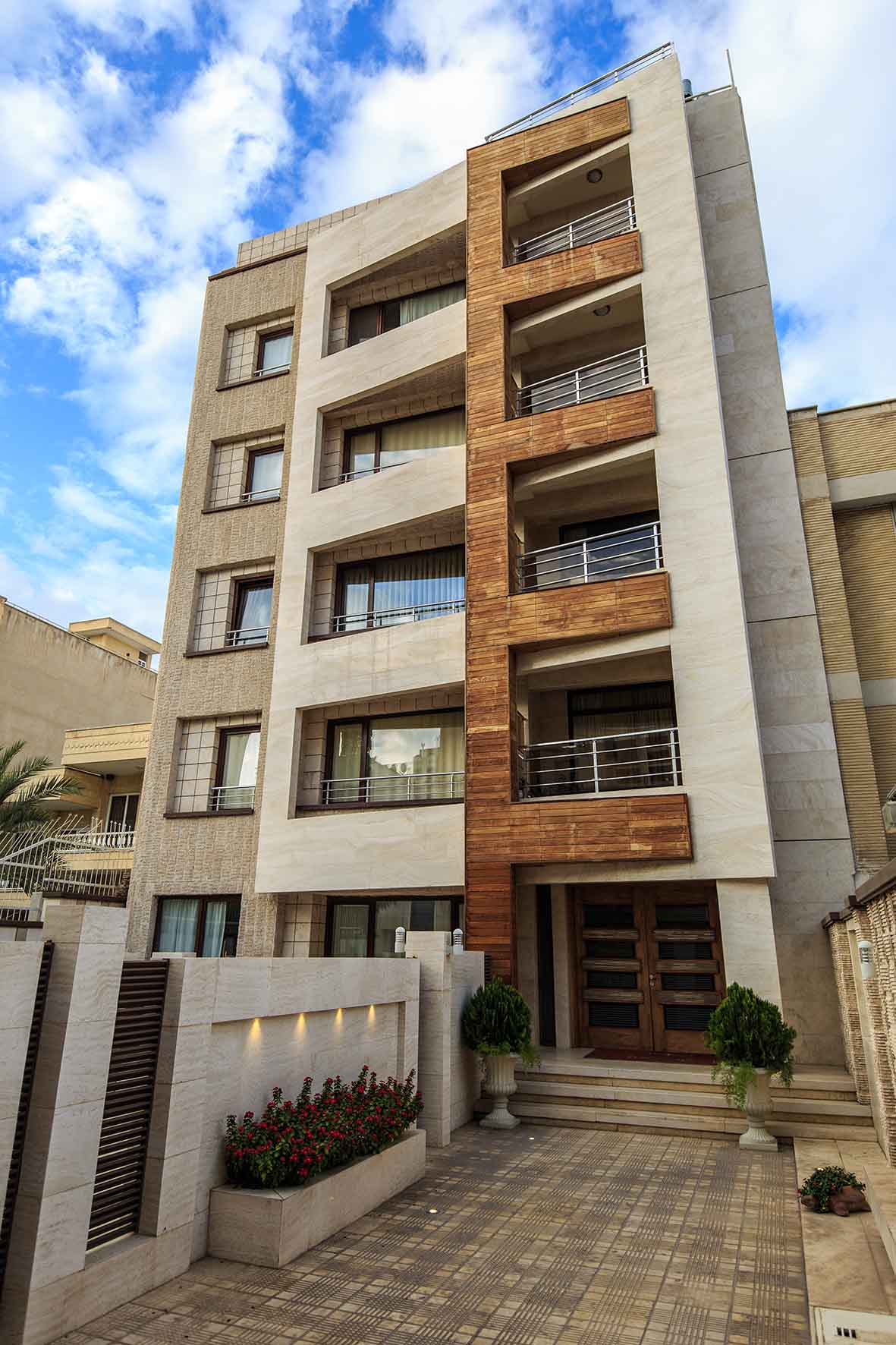 This four-story residential building is designed with a modern and minimalist approach, utilizing a combination of materials such as natural stone and thermo-treated wood on the facade. One of its most distinctive features is a secondary skin that overlays the main structure like an independent architectural frame, emphasizing the building’s form.
